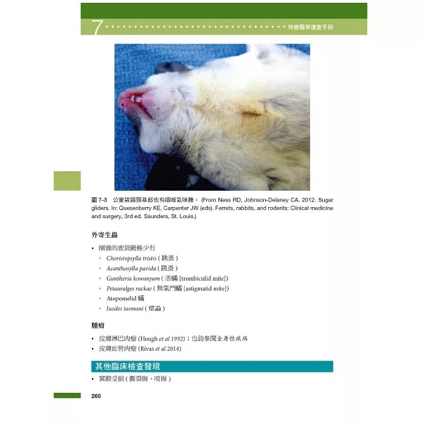 ✓ 全新章節!狨猴、刺蝟和蜜袋鼯的專屬章節,提供最新的診斷和治療方法,協助您處理診間可能遇到的特殊寵物。