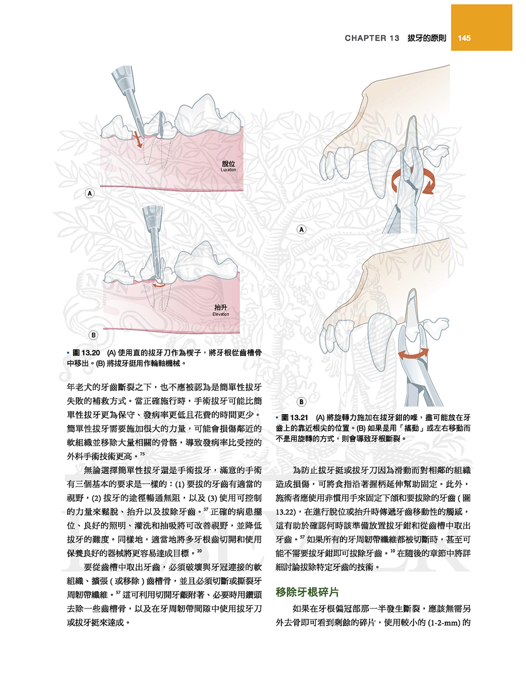 所有章節都涵蓋「為什麼」以及「如何治療」,內文描述的操作程序範圍則從封閉式單牙根拔牙到上顎及下顎腫瘤大範圍切除術。