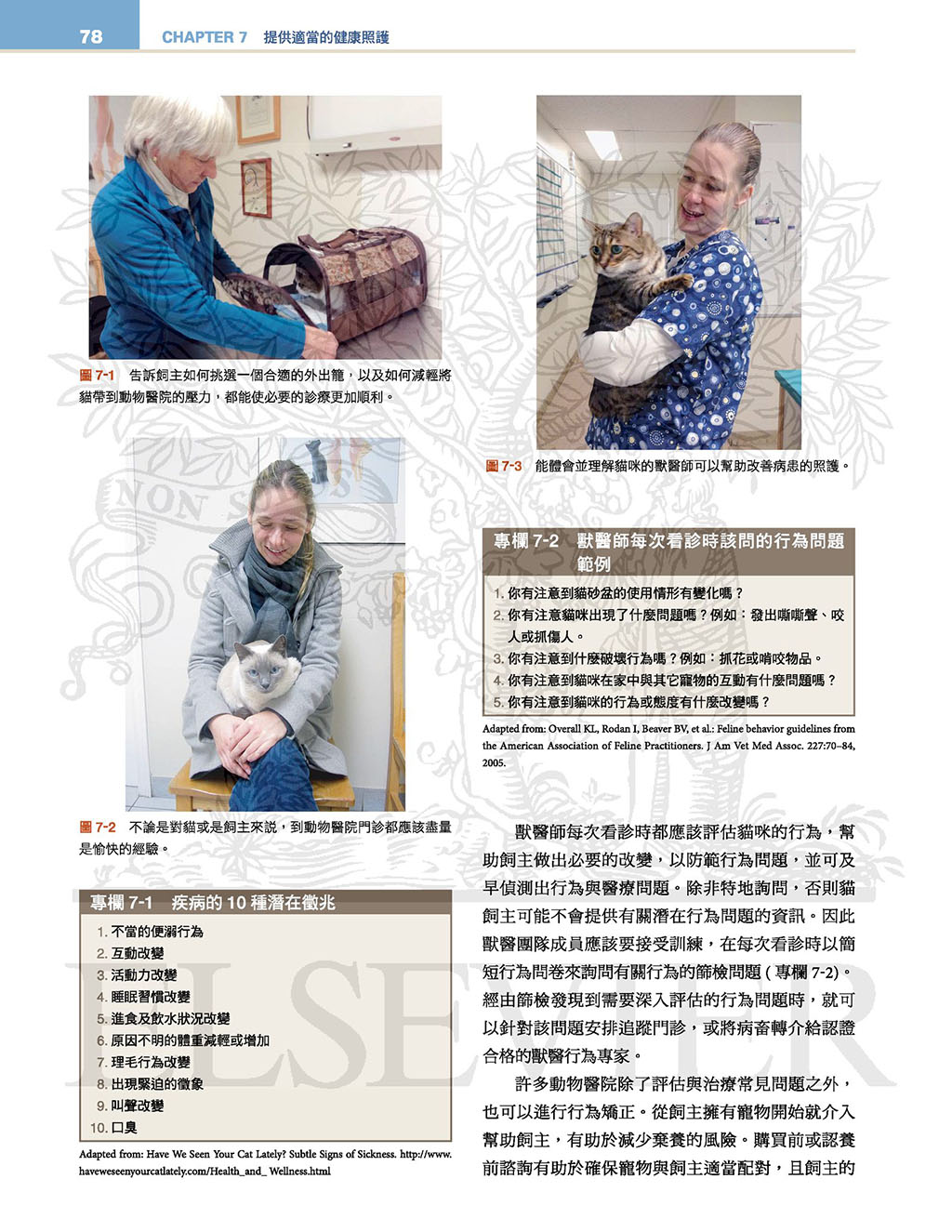 本書旨在改善貓病患在動物醫院接受到的照護品質,並讓貓與其飼主之間的關係得到最大益處。