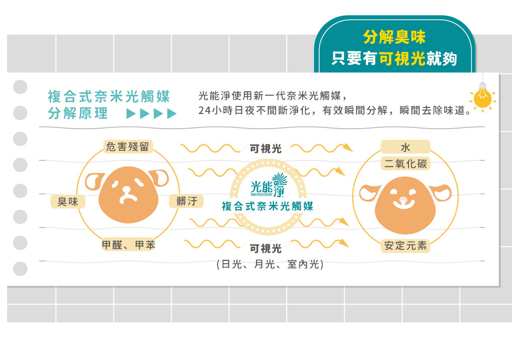 複合式奈米光觸媒有效滲透拔除異味,