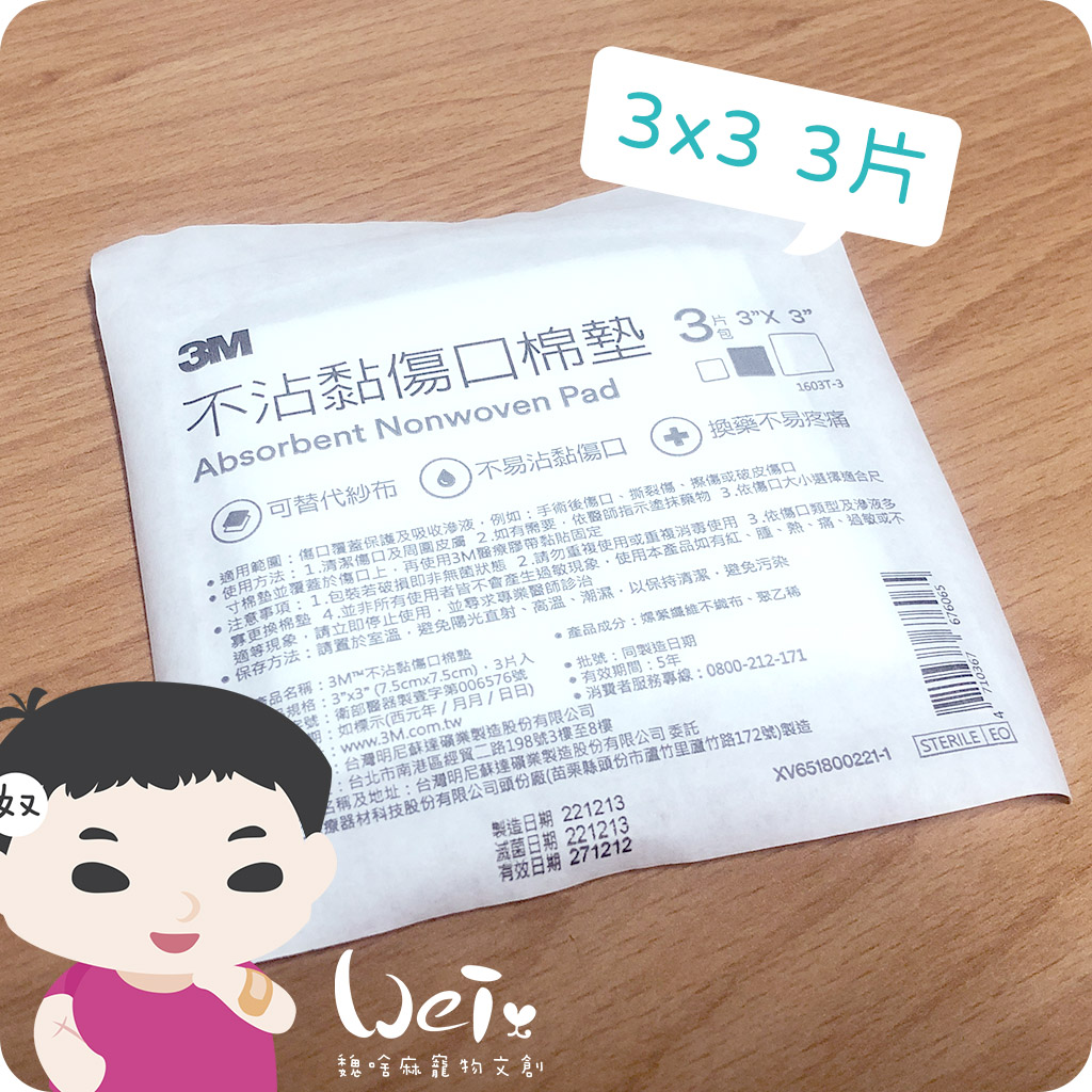 醫療器材許可證所載品名:3M 不沾黏傷口棉墊 (滅菌)