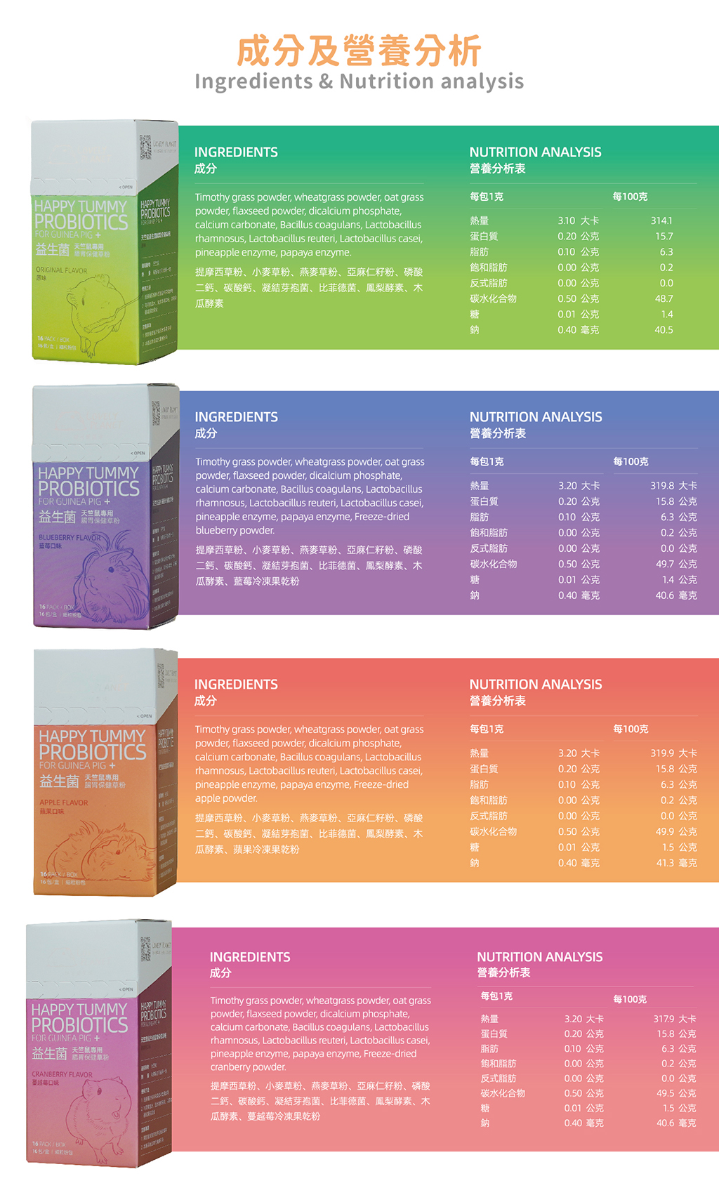 市面上草食動物益生菌多為兼用,少見針對天竺鼠體型與腸胃的劑量與菌種搭配的產品