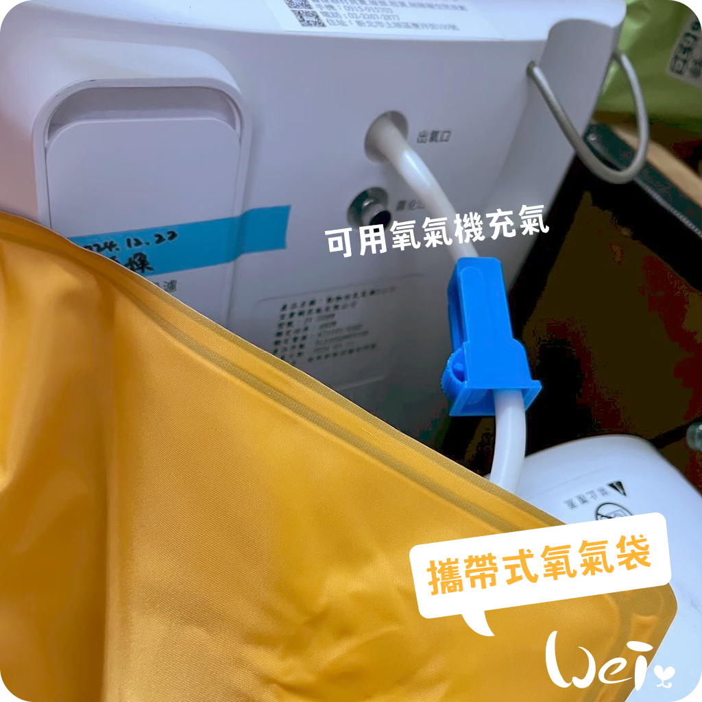 用氧氣機就能充滿一包氧氣,路程上可以吸氧移動比較安心