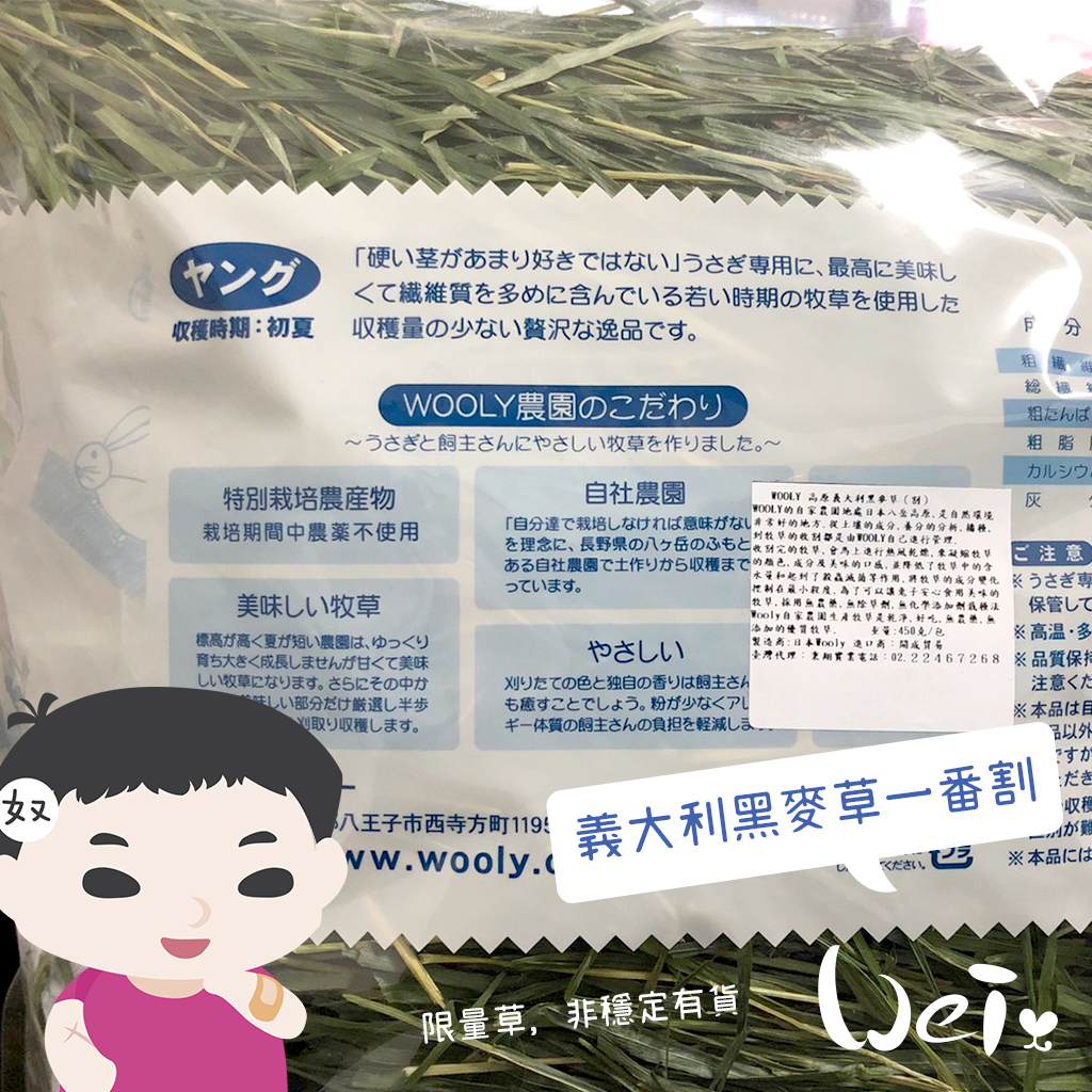 關於這點希望飼主們能夠給予諒解另外在此WOOLY想麻煩各位飼主,在餵食前稍微檢查後才給您的愛兔食用6.要怎樣保存牧草呢?有自封袋口的商品要注意不要讓袋中有大量空気進入沒有自封袋口的商品,開封後請放入密封容器裡商品不要放置在陽光直射的地方,盡量選擇濕度較低的地方存放7.為什麼每次換新年度牧草時,兔子對牧草的喜好程度會有少許變化呢?根據每年氣候等的變化,收割的牧草味道等也都會隨之發生少許的變化兔子對味道很敏感,可能察覺到了這些細微的變化,所以才會出現以上狀況請各位飼主放心使用。WOOLY的員工們對牧草有嚴格的管理制度