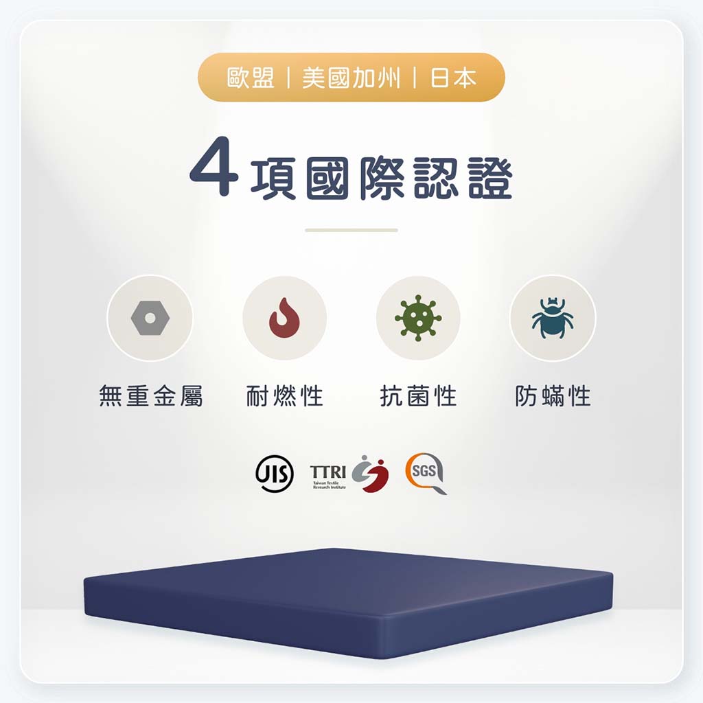 - 耐燃性 通過美國加州CA117防火耐燃寢具測試