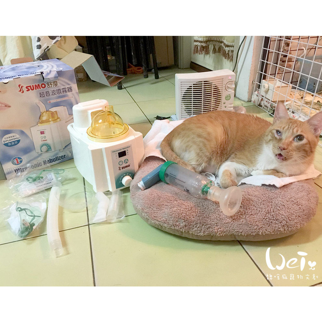 貓貓橘將也是受貓皰疹和哮喘困擾常需要使用噴霧舒緩呼吸